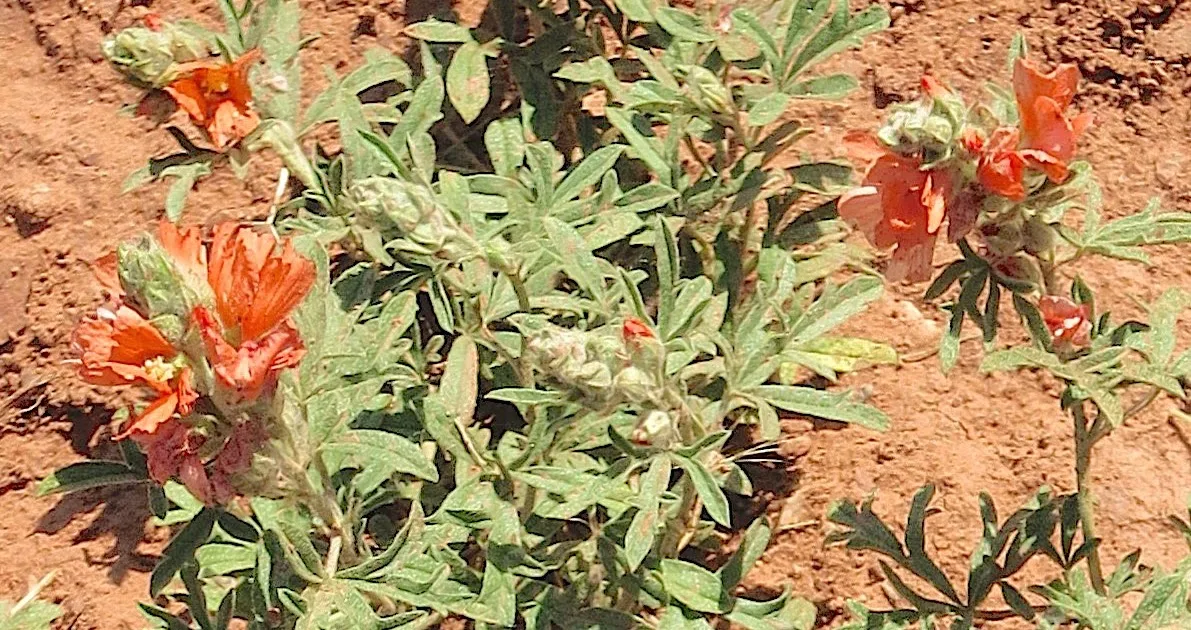 Szkarłatny globemallow, Sphaeralcea coccinea, jest małą rodzimą malwą z zaburzonych miejsc zachodniej połowy Stanów Zjednoczonych i Kanady. Ma jaskrawo pomarańczowe kwiaty – w niektórych miejscach prawie czerwone – i raczej szarozielone, głęboko podzielone (łatwo rozpoznawalne) liście.